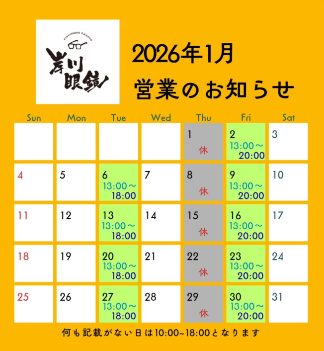 2026年1月の営業時間は写真の通りとなります